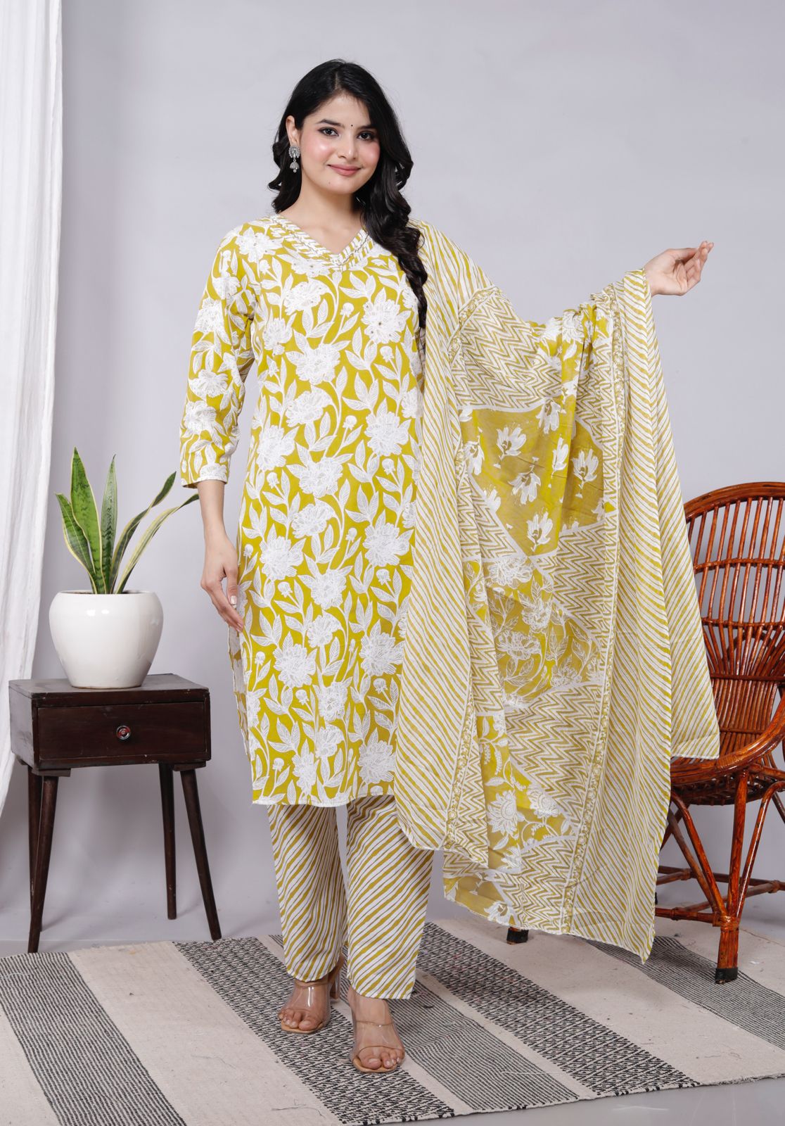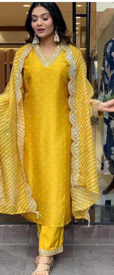 Yellow Silk Straight Kurta with Leheria Dupatta
